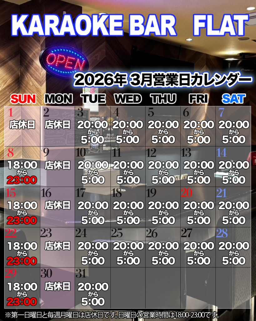 2026年3月の営業カレンダー